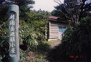 ↑韓国岳避難小屋:韓国岳と大浪池の鞍部にある。 こんな名称だがほとんど大浪池側に位置している。 |