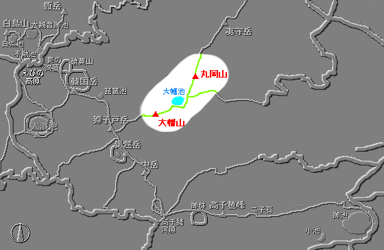 大幡山はアサガオの葉のような複雑な地形で、幾つかのピークと火口湖・大幡池を持つ。