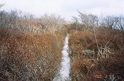 写真中央やや左に道標のパイプが一応立っているが、