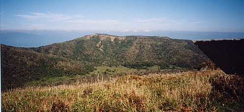 ↑新燃岳から眺めた大幡山:1381mピーク辺りの侵食が特徴。