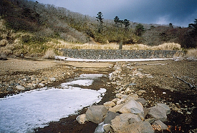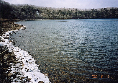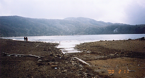 ↑大幡池湖畔:薄氷が張っていた頃で、