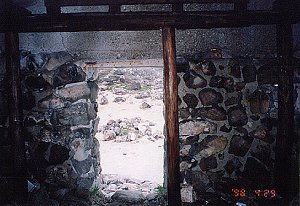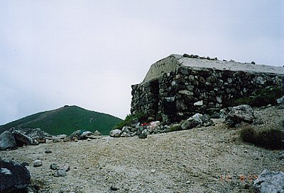 横の東千里ヶ浜の丘に、めり込んだように建てられた石造りの避難小屋。