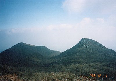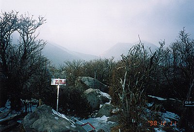 山頂はミヤマキリシマなどの潅木に覆われ、展望はちょっと良くない。