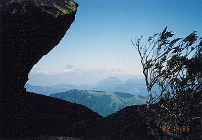 ↑黒岳の天狗からの眺め:中央奥に由布岳が見える。