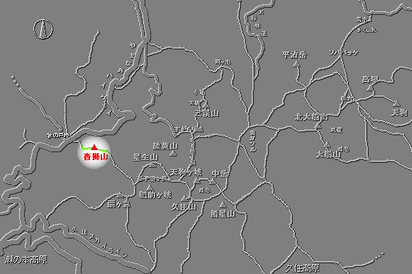 ↑沓掛山中腹から牧ノ戸峠方面の眺め。