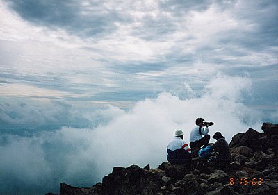 ↑久住山頂:左後ろの平原は肥前ヶ城、西千里ヶ浜。