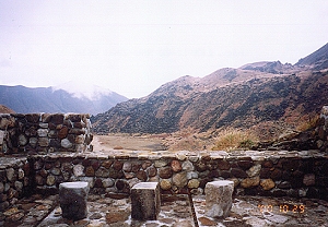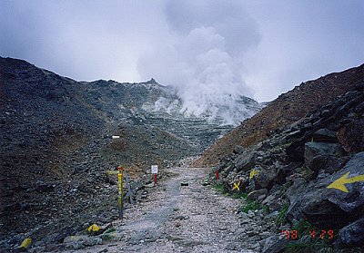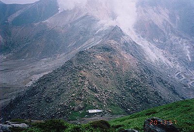 ![]() ↑復活した「愛の鐘」:逆L型台座にぶらさがっている。 登山者に濃霧注意を呼びかけた「鐘」が、再びここに。 |