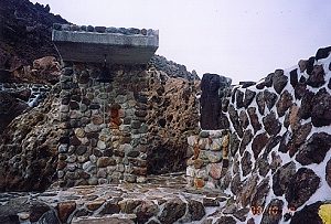 ![]() ↑テラス:簡易ベンチ付き ここから北千里ヶ浜をナメて、大船山までの眺めが楽しめる。 |