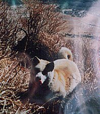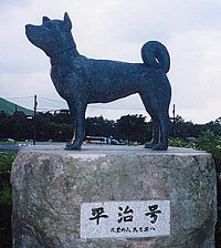 ![]() ↑長者原の九重登山口にある名犬平治の像。 すぐ隣のお墓にはミヤマキリシマが植えられ、 今でもたくさんの花が供えらている。 多くの遭難を防いだ活躍と人気が伺える。 |