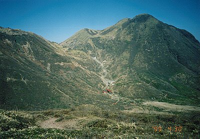 ↑立中山から見た白口岳。右後ろの山は中岳。
