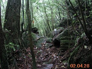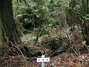 ![]() ↑「兄弟岩」・・・右の茂みの陰に巨石が見える。 |