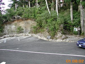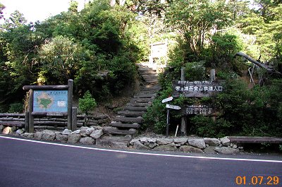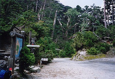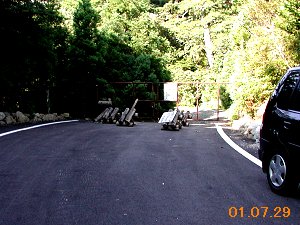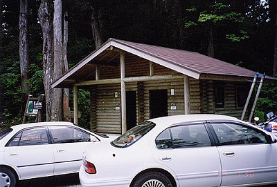 ![]() ↑淀川登山口:尾之間歩道入口付近。 トイレ左横には、バスのUターン用に 削り取られたスペースがある。 いいのか? |