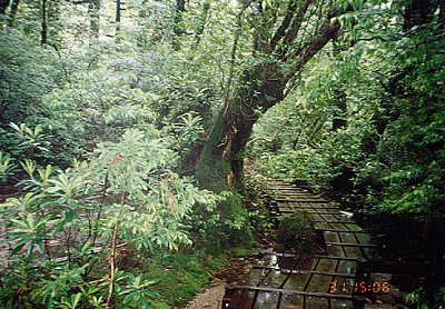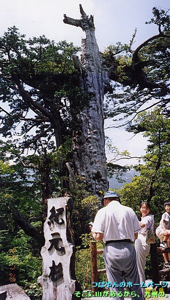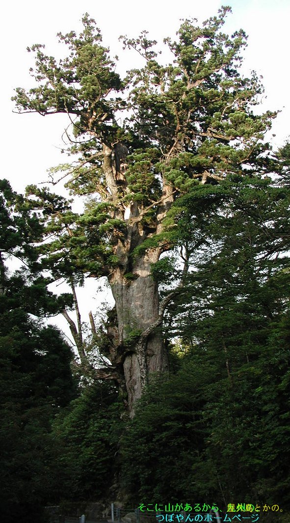 ![]() ↑紀元杉:胸高囲8.1m、樹高19.5m、樹齢約3000年。 安房林道沿い、標高1230mの所に居る。 上部にはシャクナゲ、ヒカゲツツジ、ナナカマドなどの 着生樹が付いていて、四季相応の彩りを見せる。 ヤクスギランドの近くであり、 林道のすぐ脇にあるので、最も多くの人が訪れる巨木である。 展望台付き。 |