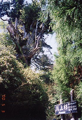 ![]() ↑川上杉:胸高囲8.9m、樹高27.0m、樹齢約2000年。 安房林道沿い、標高1280mの所に居る。 カーブ道路のすぐ脇だが、余りに近すぎる為 視野に収まらず、逆に気付かれにくい。 名前の由来は、林道建設の際に この銘木を残す為に計画を変更した担当者から。 ええ話や。 |